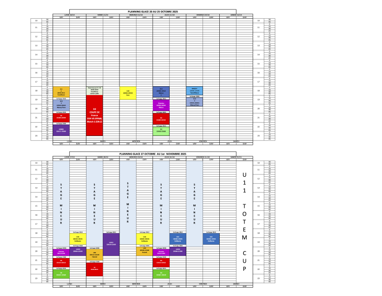 Planning d'entrainement à prendre en compte uniquement sur la période des vacances de la Toussaint du 20 octobre au 2 novembre 2025.